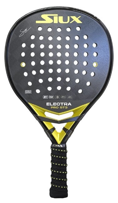 Introducing the new Siux Electra Pro ST3 . This hybrid racket stands out for its shape, its EVA Hard core and its 15K 20*40 Textreme faces for exceptional performance. The tubular and the sandy gloss finish offer resistance and aesthetics. With a medium-hard feel, it is the perfect choice for demanding players accustomed to a powerful game at net. Experience excellence in every shot!