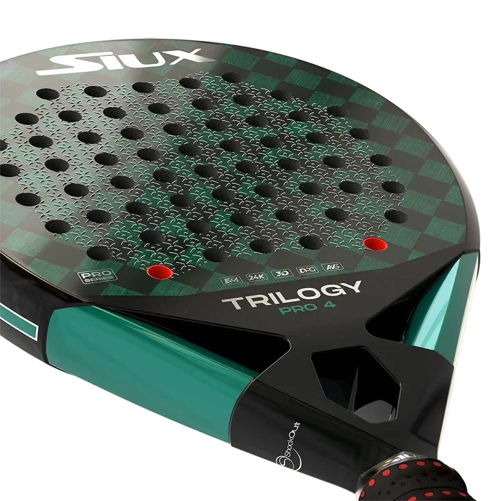 De nieuwe Siux Trilogy Control Pro 4, een racket gericht op controle dat niet onopgemerkt zal blijven op de banen met zijn smaragdgroene uitstraling aan de zijkant en het koolstofeffect op de vlakken.