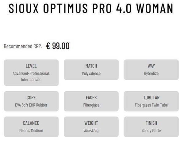 LEVEL:Advanced-Professional, IntermediatePLAY:PolyvalenceSHAPE:HybridizeCORE:EVA Soft EHR RubberFACES:FiberglassTUBULAR:Fiberglass Twin TubeBALANCE:Means, MediumWEIGHT:355-375gFINISH:Sandy Matte