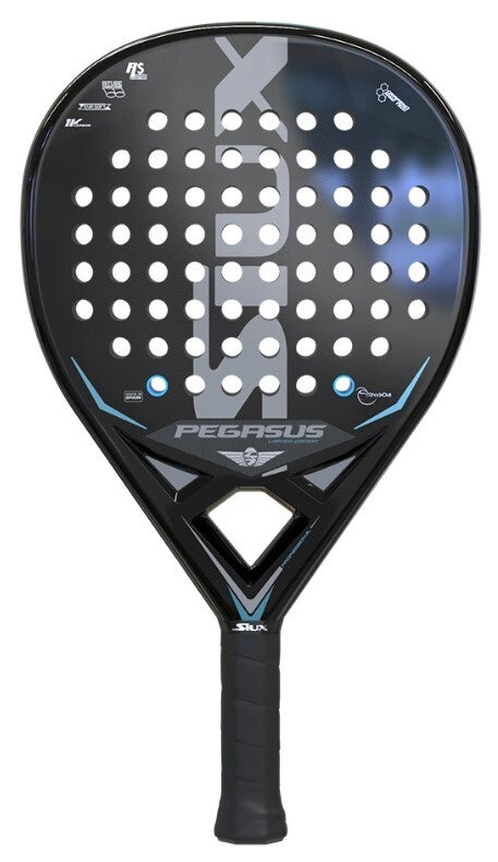 Met een omgekeerde druppelvorm en een medium balans is de Pegasus Limited Edition 1K perfect om met balans te spelen, het schot zeer goed te beheersen en de bal hard op het net te slaan. Het materiaal dat we in dit racket benadrukken, zit in de 1K carbon vlakken, die een harder oppervlak bereiken, ideaal voor aanvallen en het maken van powershots.