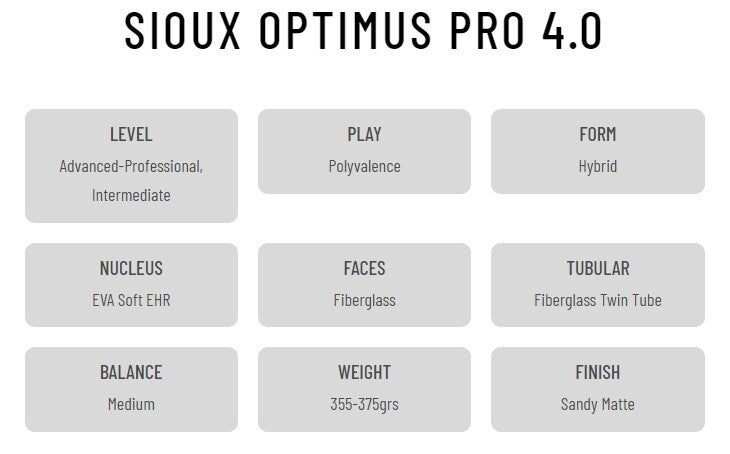 LEVEL:Advanced-Professional, IntermediatePLAY:PolyvalenceSHAPE:HybridizeCORE:EVA Soft EHR RubberFACES:FiberglassTUBULAR:Fiberglass Twin TubeBALANCE:Means, MediumWEIGHT:355-375gFINISH:Sandy Matte