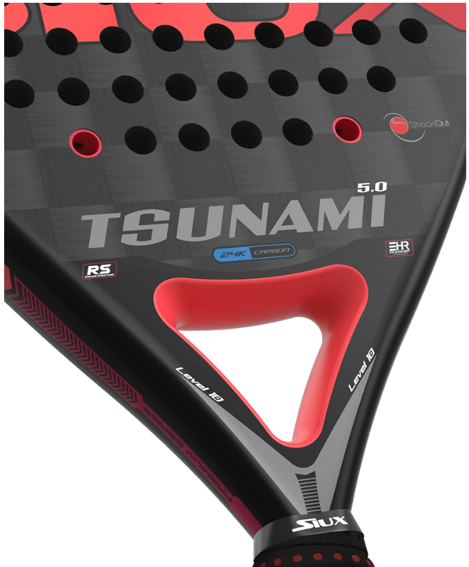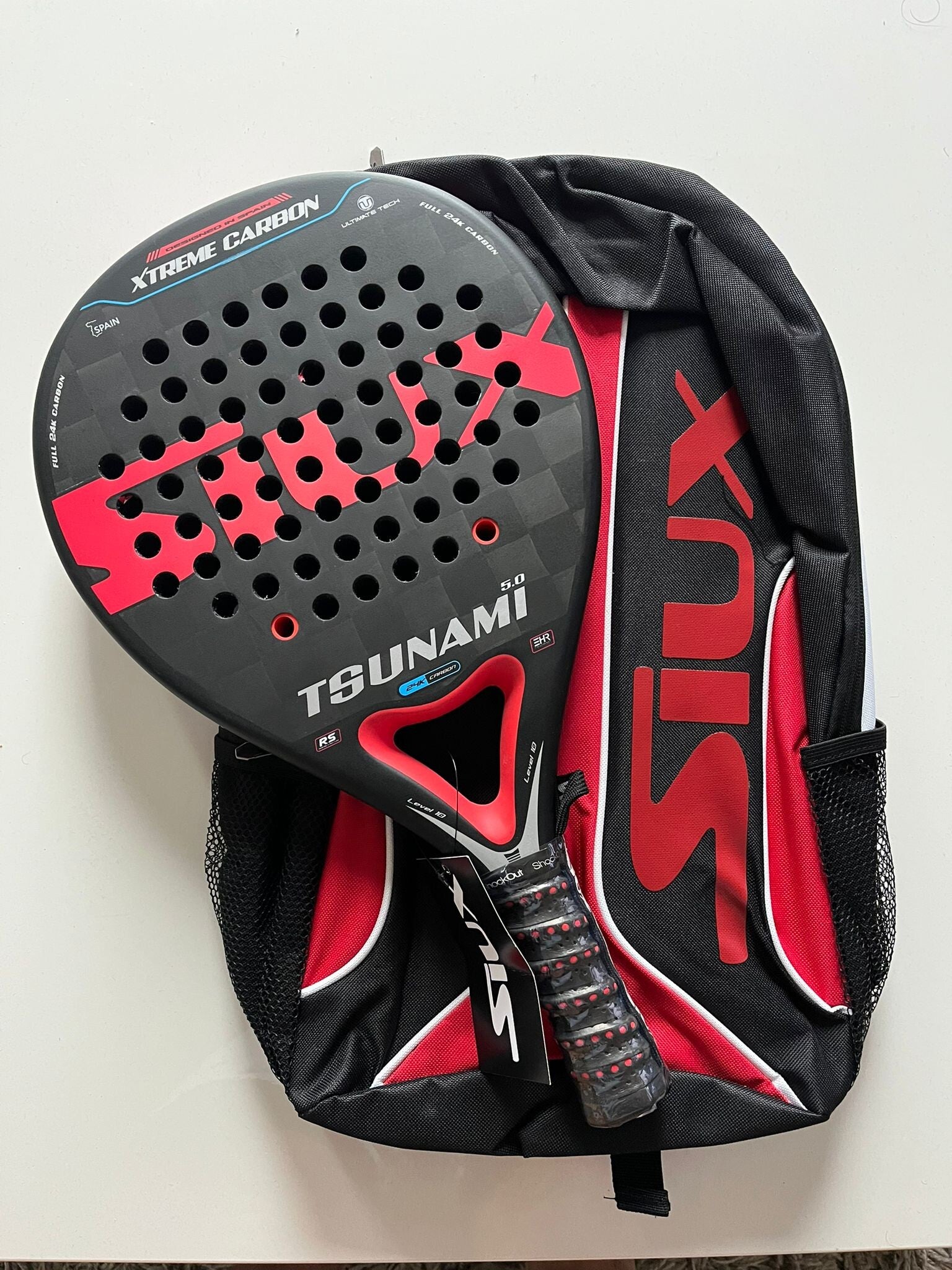 De Siux Tsunami 5.0 rood is een padel racket uit de tsunami lijn van 2022. Dit is een rond racket met een hoge balans. Vanwege deze combinatie voelt het racket licht aan, maar heb je toch veel power. Ideaal voor spelers die graag vanuit de verdediging de wedstrijd willen controleren en in de aanval het punt willen maken. Zowel het racketblad als het frame bestaan voornamelijk uit hoogwaardig 24K carbon. Dit zorgt voor een uitmuntende duurzaamheid en hoge precisie in het racket. De Siux Tsunami 5.0 heeft een zachte kern, waardoor de ballen comfortabel van het padel racket afkomen.